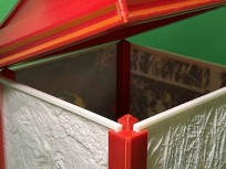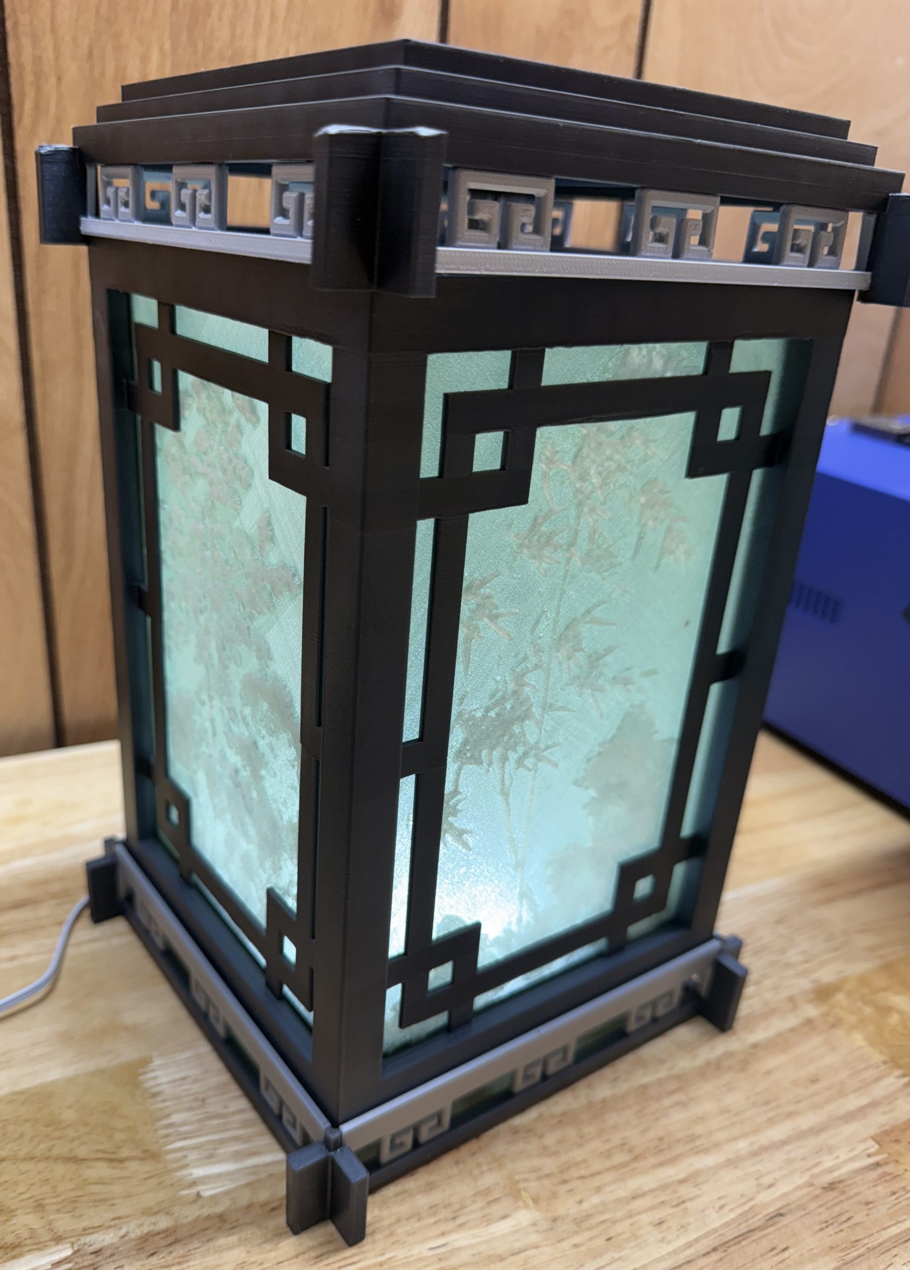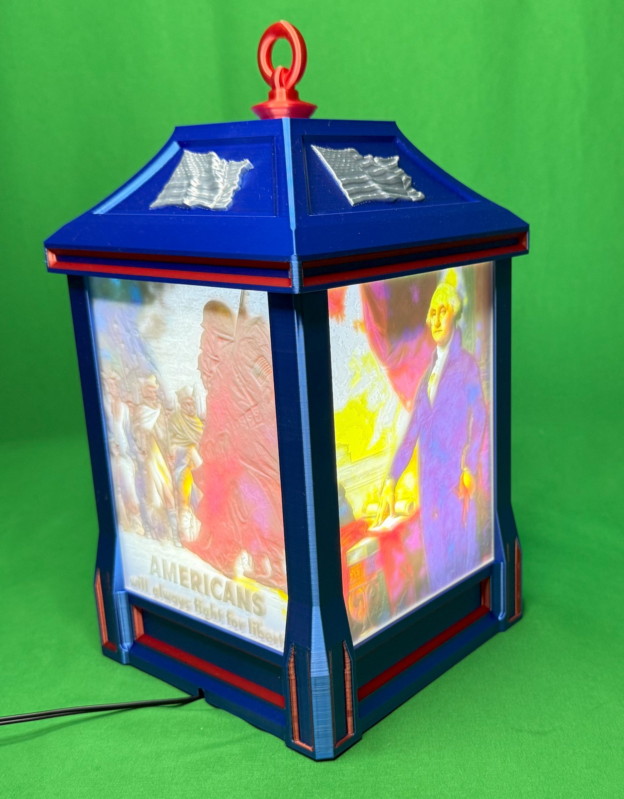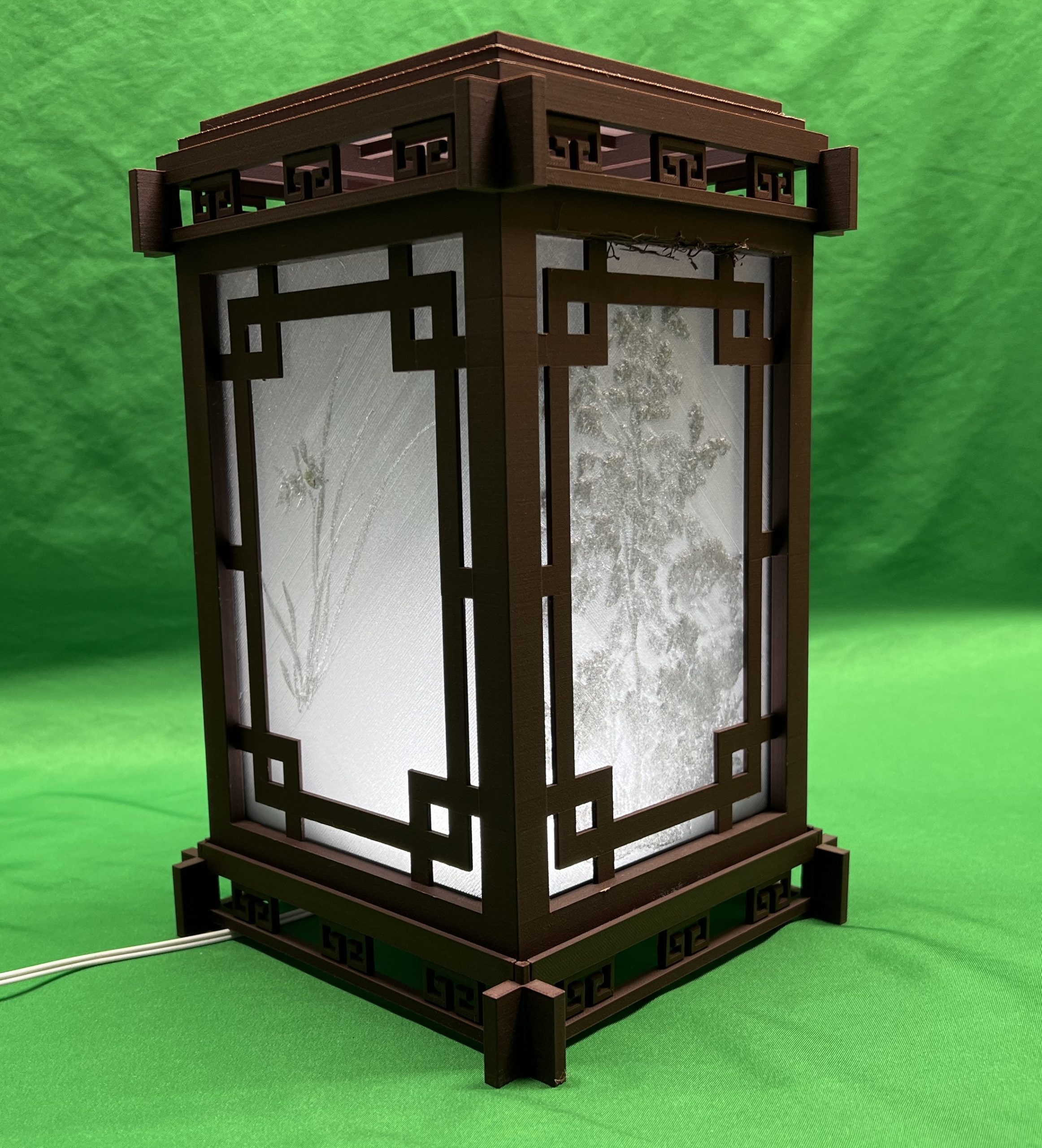A memory lantern is a collection of four of your pictures rendered into a textured, dimensional photograph that shows the full color when the lantern is turned on.